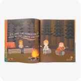 Rugged adventure milestone pennants and campfire-themed memory books.